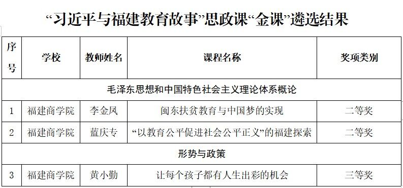 根据《中共福建省教育工委关于公布“习近平与福建教育故事”思政课“金课”遴选结果 暨教学展示活动的通知》(闽委教思〔2023〕14 号)文件精神,新葡萄官网喜获二等奖2项,三等奖1项,具体如下: