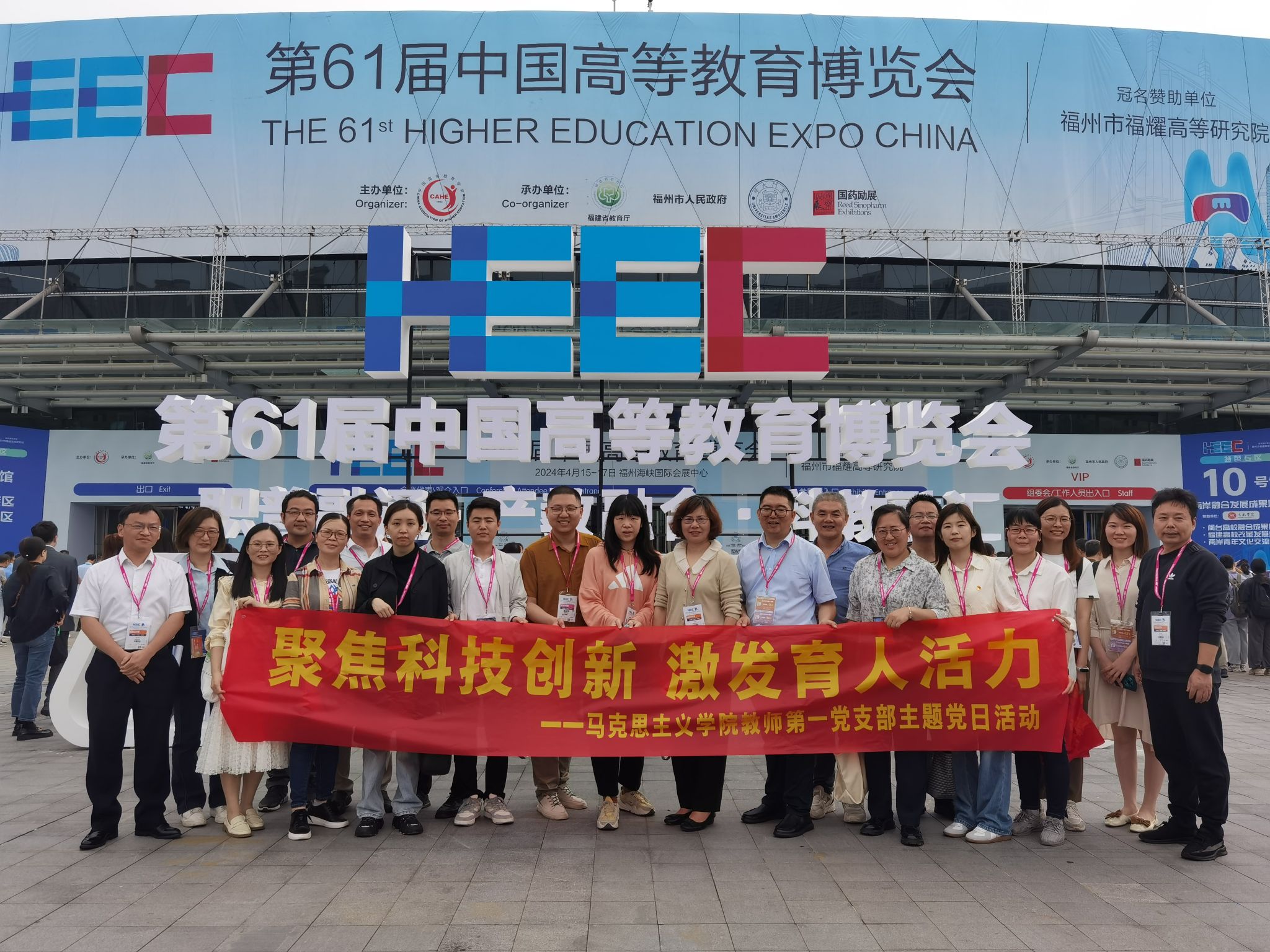 4月16日,新葡萄官网AMG教师第一党支部组织党员们参加了在福州举办的第61届中国高等教育博览会。此次支部主题党日活动以“聚焦科技创新 激发育人活力”为主题,旨在探索科技创新在教育领域的应用,以及如何更有效地激发思政课育人的新活力。