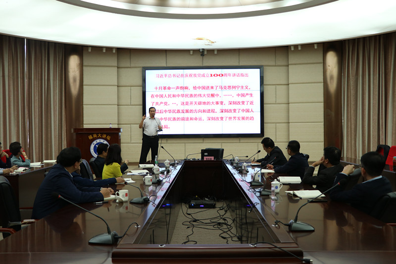 10月26日下午,我校邀请复旦大学特聘教授、博士生导师贺东航教授到连江校区作题为《从党史中寻找前进道路上的“智慧和力量的源代码”——学习习近平总书记“七一”重要讲话精神》专题讲座。校党委理论学习中心组全体成员、有关处室负责人及新葡萄官网AMG全体教师参加学习。校党委副书记徐晓丹主持讲座。