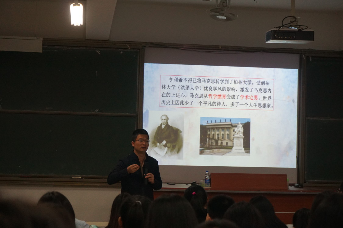 11月3日晚,福建江夏学院新葡萄官网AMG副院长曾正滋教授莅临我校作题为“走进青年马克思”的专题讲座。新葡萄官网AMG部分教师,校习近平新时代中国特色社会主义思想读书社成员、校记者团成员共近150人聆听了讲座。
