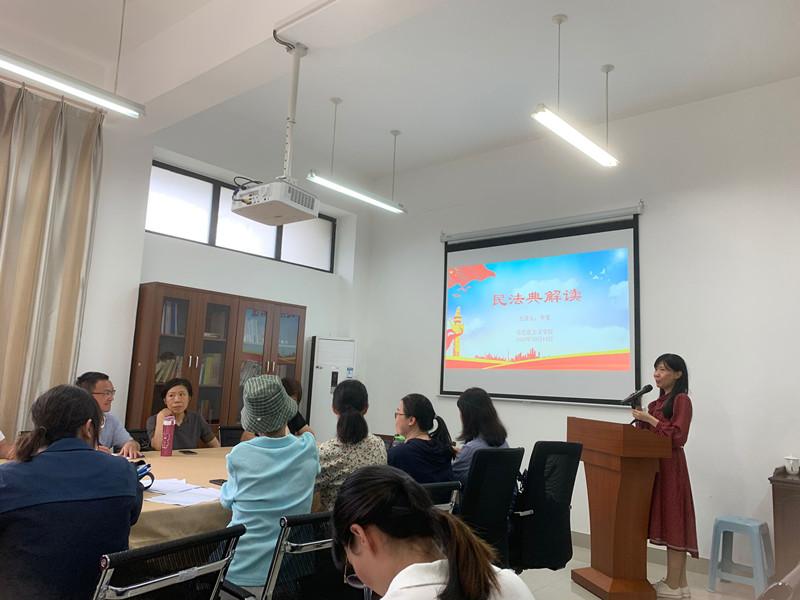 2020年10月13日下午,新葡萄官网AMG直属党支部在院部会议室召开了《中华人民共和国民法典》的学习活动,马院副教授李莹老师做了题为《民法典解读》的主题讲座。讲座由林萍书记支持,马院全体党员教师聆听了这场讲座。