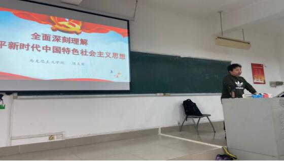 陈火荣副教授以历史维度为切入点,分析了习近平新时代中国特色社会主义思想形成的时代背景,结合大量历史事件系统梳理了一代又一代中央领导集体推进马克思主义中国化的艰辛探索历程,由全面学习苏联社会制度到转向走符合本国国情的中国特色社会主义道路,突出强调了道路自信的重要性;在讲授中,陈火荣副教授联系我国新的历史方位,深入浅出地解读了习近平新时代中国特色社会主义思想的核心内容,并从理论价值与实践价值两维度阐述了其历史地位。