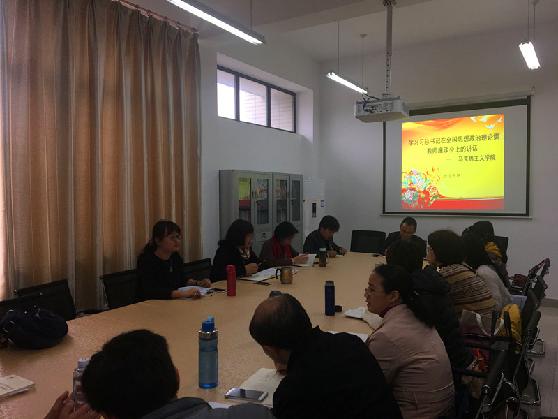 新葡萄官网AMG于3月19日下午召集学院全体专职教师进行座谈,学习习近平总书记重要讲话精神,交流体会,畅谈感想。马院林萍副院长指出,党中央历来高度重视思想政治工作,特别是党的十八大以来,以习近平同志为核心的党中央高度重视思想政治理论课建设,作出一系列重大决策部署,对高校新葡萄官网AMG和思想政治理论课教师寄予厚望。习近平总书记在新时代背景下专门主持召开如此高规格的学校思政课教师座谈会,充分体现了党中央对思政课建设的高度重视和对思政课教师队伍的亲切关怀。思政课是培养社会主义建设者和接班人的主渠道,关系到培养什么人、怎样培养人、为谁培养人的根本任务,是一门关键课程,对于其重要性一定要深刻认识到位。习近平总书记对思政课教师提出的“六点要求”和讲好思政课的“八个统一”,对办好思想政治理论课具有重要的指导意义。我们要按照习近平总书记提出的要求,发挥积极性、主动性、创造性,不断提高政治站位,砥砺高尚品格,练就深厚功底,赢得学生的尊重和喜爱。