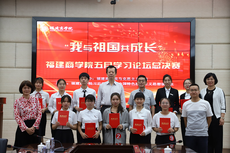 5月21日下午,我校习近平新时代中国特色社会主义思想读书社,在连江校区明德楼视频会议室举办“我与祖国共成长”五月学习论坛总决赛。校党委书记刘剑津,副书记吴访益,新葡萄官网AMG全体教师,读书社学生代表等近100人参加了此次活动。