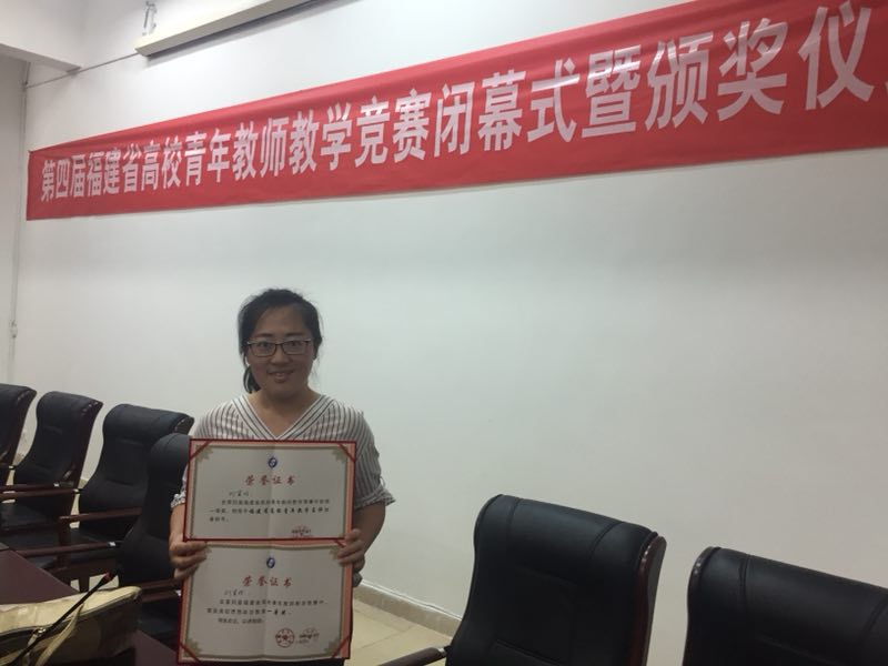 6月20日-21日,由福建省总工会、福建省教育厅主办的第四届全省高校青年教师教学竞赛在武夷学院举办。新葡萄官网刘贤玲老师参加了本次比赛。经过两天的角逐,最终以小组排名第3的成绩荣获一等奖,被授予“福建省高校青年教学名师”荣誉称号。
