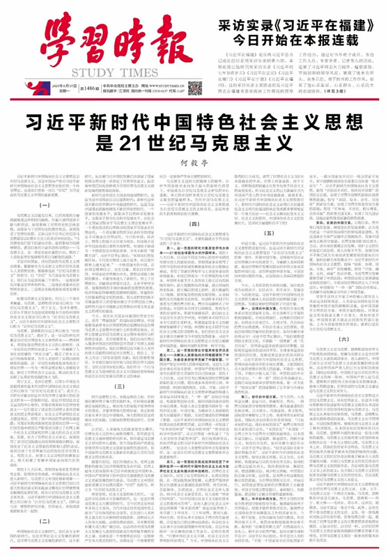党的十八大以来,党和国家事业发生历史性变革、取得历史性成就,中国特色社会主义进入新时代。马克思主义中国化最新成果——习近平新时代中国特色社会主义思想已经以其重大的理论意义和实践意义镌刻在世界思想理论版图的显著位置,成为21世纪马克思主义的主体形态。习近平新时代中国特色社会主义思想之所以称为“21世纪马克思主义”,同样是与这一思想的研究对象、世界意义、实践成效紧密联系在一起的。