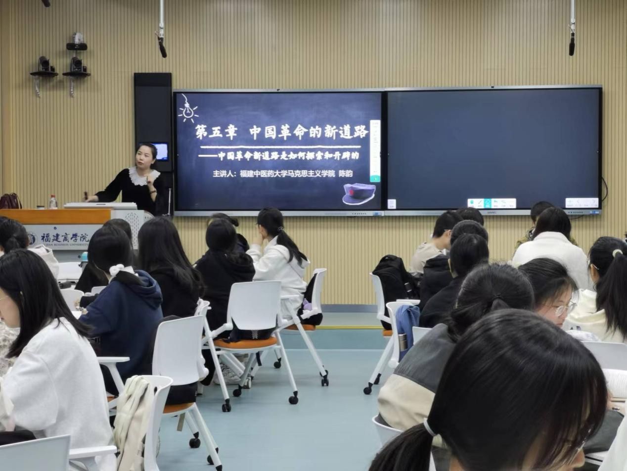 3月22日上午,应新葡萄官网AMG邀请,全国高校思政课教学能手、福建中医药大学新葡萄官网AMG陈韵教授走进连江校区智慧教室,以“对革命新道路的艰辛探索”为题开展教学示范。