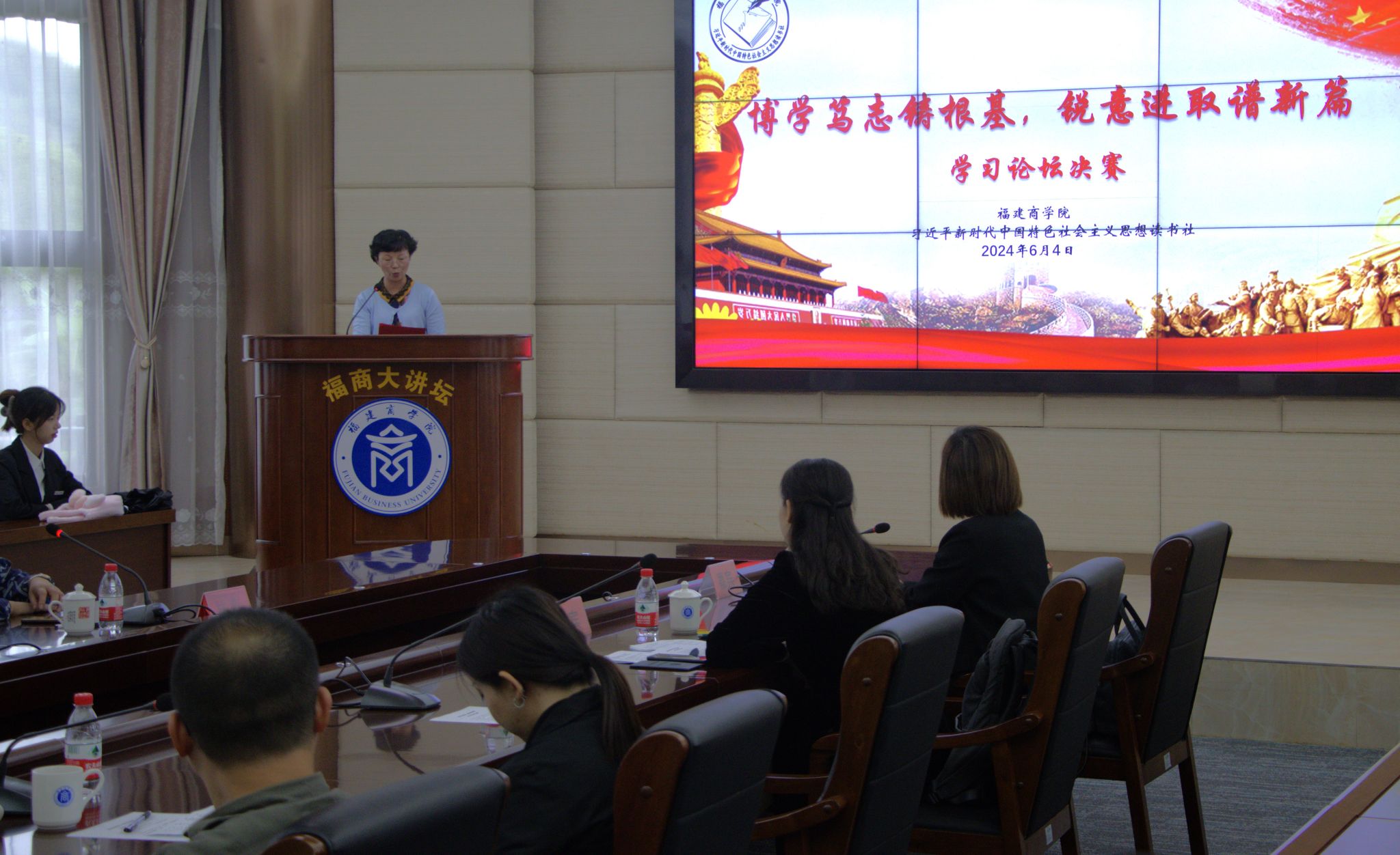 2024年6月4日,新葡萄官网AMG习近平新时代中国特色社会主义思想读书社与马列经典著作读书社,在连江校区明德楼视频会议室联合举办了主题为“博学笃志著根基 锐意进取谱新篇”的学习论坛决赛。学校林文艺副校长、新葡萄官网AMG负责人和读书社指导老师、新葡萄官网AMG部分教师及读书社社员等近百名师生参加此次活动。