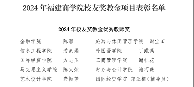 9月19日下午,我校在连江校区学生活动中心召开庆祝第40个教师节暨表彰大会。新葡萄官网陈火荣老师获得2024年校友奖教金优秀教师荣誉表彰,陈翠老师作为2024年福建省第七届高校青年教师教学竞赛一等奖获得者获得表彰。
