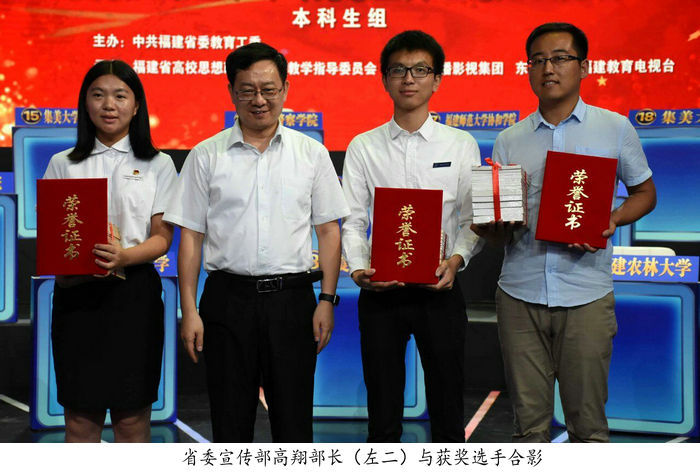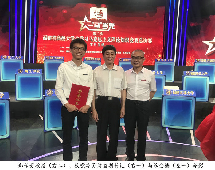 9月23日下午,第二季福建省高校大学生学习马克思主义理论“一‘马’当先”知识竞赛落下帷幕。我校学子苏金楼在全省38所高校、190名参赛选手中过关斩将,勇夺本科生组桂冠!