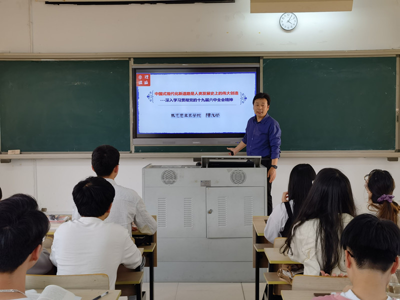 为进一步学习贯彻党的十九届六中全会精神,深刻领悟党百年奋斗的重要经验和教训,使青年学生认识到党和国家发展所处的新的历史方位和前进方向,坚定青年学生跟党走中国特色社会主义道路的信念,5月18日晚,新葡萄官网AMG陈火荣副教授应邀在马尾校区诚信楼201教室开展“中国式现代化新道路是人类发展史上的伟大创造”主题宣讲活动,校马列经典著作读书社社员参与学习。